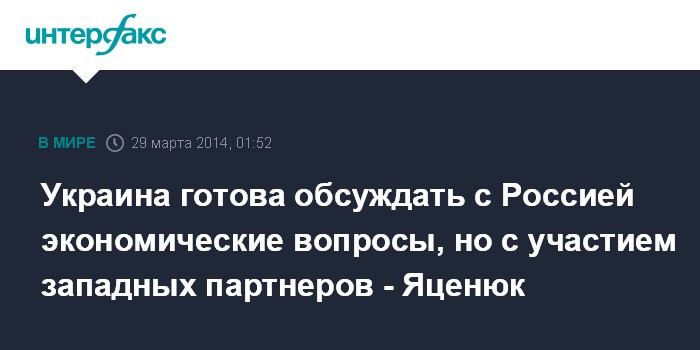 Украина готова обсуждать с Россией экономические вопросы, но с участием западных партнеров - Яценюк