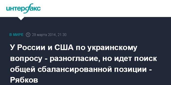 У России и США по украинскому вопросу - разногласие, но идет поиск общей сбалансированной позиции - Рябков