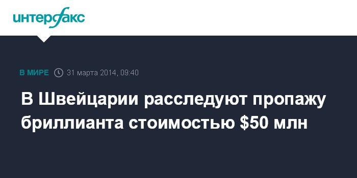 Москва. 31 марта. INTERFAX.RU - Власти Женевы ведут расследование пропажи розового бриллианта, стоимость которого оценивается в $50 млн, сообщила швейцарская телерадиовещательная компания RTS.