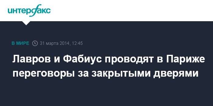Москва. 31 марта. INTERFAX.RU - Встреча главы МИД РФ Сергея Лаврова с главой МИД Франции Лораном Фабиусом открылась в понедельник в Париже.