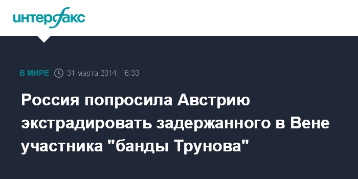 Россия попросила Австрию экстрадировать задержанного в Вене участника "банды Трунова"