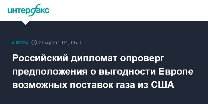 Москва. 31 марта. INTERFAX.RU - Предположения о том, что американский сжиженный природный газ (СПГ) в случае его поставок в Европу окажется дешевле российского газа, являются фантазиями, заявил постпред РФ при ЕС Владимир Чижов.