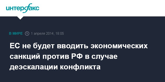ЕС не будет вводить экономических санкций против РФ в случае деэскалации конфликта