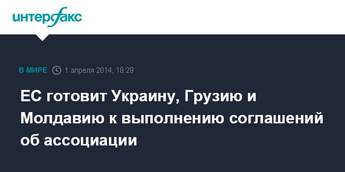 Брюссель. 1 апреля. INTERFAX.RU - Европейский союз под влиянием украинского кризиса активизирует подготовку Украины, Грузии и Молдавии к выполнению соглашений об ассоциации и свободной торговле с ЕС.