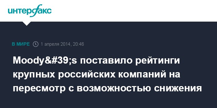 Moody's поставило рейтинги крупных российских компаний на пересмотр с возможностью снижения