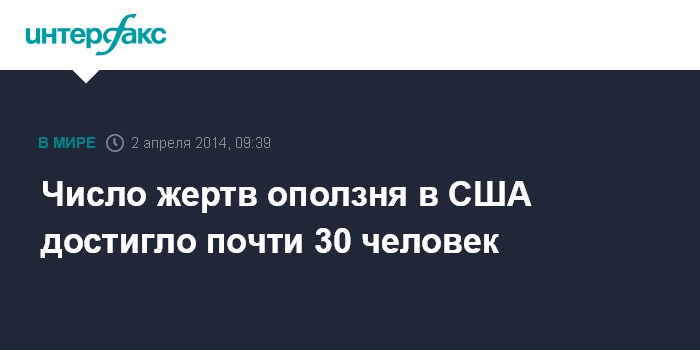 Москва. 2 апреля. INTERFAX.RU - Не менее 28 человек стали жертвами оползня в американском штате Вашингтон, пишет в среду американская газета USA Today.