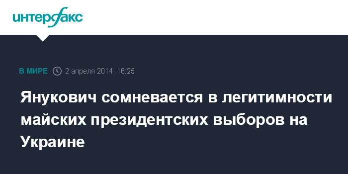 Москва. 2 апреля. INTERFAX.RU - Легитимность предстоящих на Украине в мае выборов президента - под вопросом, считает Виктор Янукович.