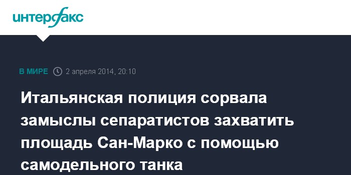 Итальянская полиция сорвала замыслы сепаратистов захватить площадь Сан-Марко с помощью самодельного танка