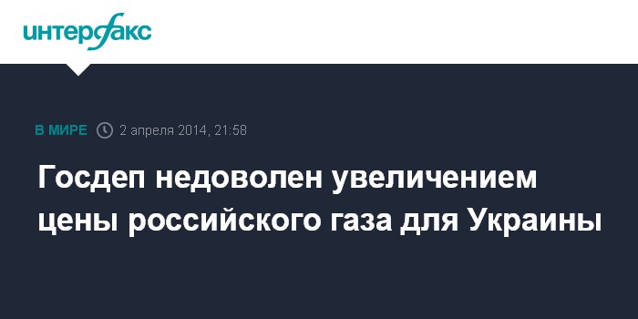 Госдеп недоволен увеличением цены российского газа для Украины