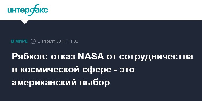 Москва. 3 апреля. INTERFAX.RU - Решение NASA свернуть сотрудничество с Роскосмосом является выбором США, заявил замглавы МИД РФ Сергей Рябков.