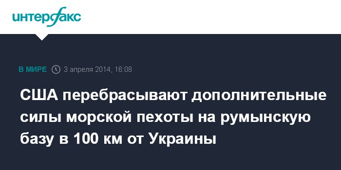 Москва. 3 апреля. INTERFAX.RU - Пентагон направит дополнительно 175 морских пехотинцев на базу на черноморском побережье Румынии для усиления размещенных там подразделений сил кризисного реагирования Африканского командования ВС США, сообщил представитель минобороны Стив Уоррен.