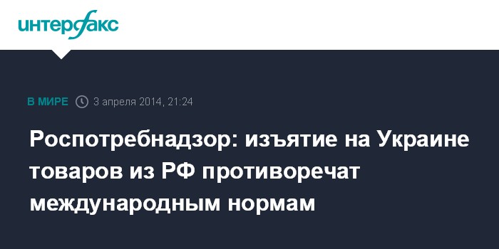 Москва. 3 апреля. INTERFAX.RU - В Роспотребнадзоре заявили, что у украинских контрольных органов нет оснований для изъятия из оборота российских товаров.