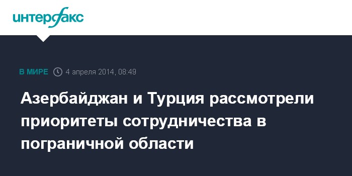 Москва. 4 апреля. INTERFAX.RU - Состояние пограничного сотрудничества между Азербайджаном и Турцией и приоритетные направления его развития обсудили в Баку начальник Госпогранслужбы (ГПС) Азербайджана Эльчин Гулиев и глава Генштаба Вооруженных сил Турции Недждет Озел.