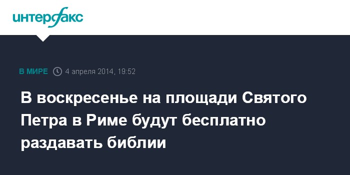 Москва. 4 апреля. INTERFAX.RU - Любой желающий в это воскресенье сможет бесплатно получить карманную библию на площади Святого Петра в Риме, сообщил журналистам глава зала печати святого престола Федерико Ломбарди.