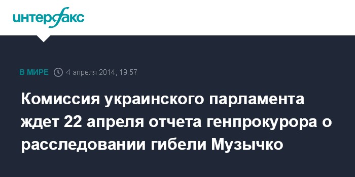 Комиссия украинского парламента ждет 22 апреля отчета генпрокурора о расследовании гибели Музычко