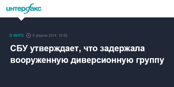 "СБУ в Луганской области задержала и разоружила глубоко законспирированную диверсионную группу. Группа злоумышленников планировала 10 апреля осуществить вооруженный захват власти в Луганской области с запугиванием мирного населения и применением оружия и взрывчатки", - рассказали агентству "Интерфакс-Украина" в пресс-центре СБУ в субботу.