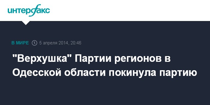 Москва. 5 апреля. INTERFAX.RU - Ряд высокопоставленных "регионалов" Одесской области вышли из Партии регионов, сообщили агентству "Интерфакс-Украина" в субботу в пресс-службе уже бывшего руководителя Одесской областной организации Партии регионов Николая Скорика.