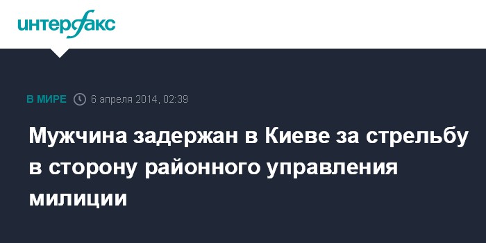Киев. 6 апреля. INTERFAX.RU - Правоохранители в Киеве задержали мужчину, который в ночь на субботу сделал несколько выстрелов в сторону здания Шевченковского райуправления милиции, сообщила пресс-служба киевского главка МВД.