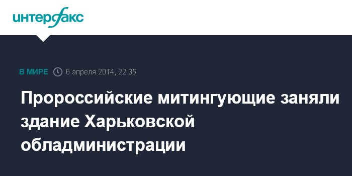 Москва. 6 апреля. INTERFAX.RU - Пророссийски настроенные митингующие зашли в здание областной государственной администрации (ОГА) в Харькове, передает корреспондент агентства "Интерфакс-Украина".