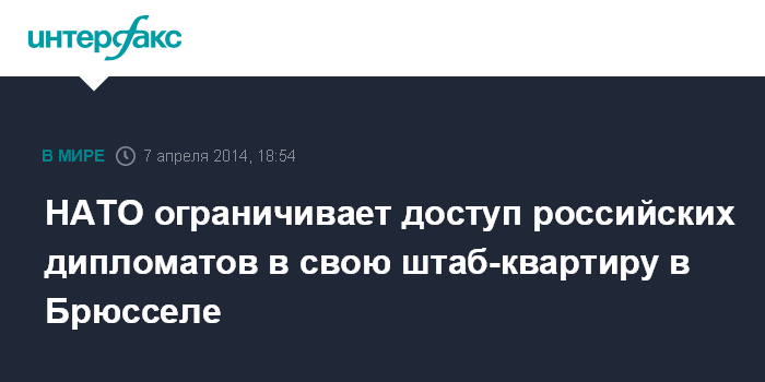 Москва. 7 апреля. INTERFAX.RU - Российским дипломатам будет ограничен доступ в штаб-квартиру Альянса в Брюсселе.