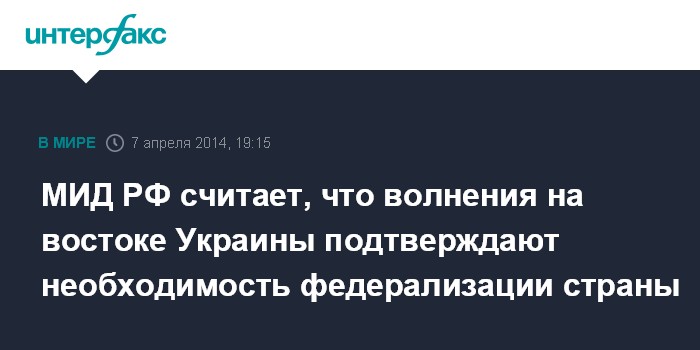 Москва. 7 апреля. INTERFAX.RU - События на востоке Украины доказывают необходимость проведения в стране конституционной реформы и федерализации государства, заявляют в МИД РФ.
