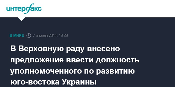 Москва. 7 апреля. INTERFAX.RU - Народный депутат, член фракции УДАР Сергей Каплин внес проект постановления о назначении уполномоченного Верховной рады Украины по вопросам развития юго-восточных областей страны.