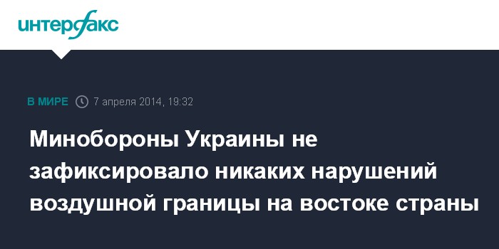 "Управление прессы и информации Минобороны Украины сообщает, что по состоянию на 17.00 информация, распространенная в региональных СМИ восточных областей Украины, по поводу пересечения госграницы военными самолетами армии другого государства не соответствует действительности", - сказано в сообщении, размещенном на сайте оборонного ведомства в понедельник.