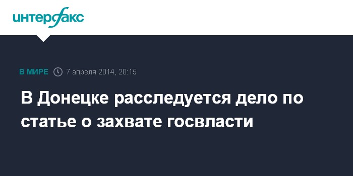 Киев. 7 апреля. INTERFAX.RU - Действия митингующих в Донецке, захвативших здания областной государственной администрации и управления Службы безопасности Украины и заявивших о создании независимой республики, квалифицированы как действия, направленные на насильственное изменение или свержение конституционного строя или на захват государственной власти, сообщает пресс-служба прокуратуры Донецкой области.