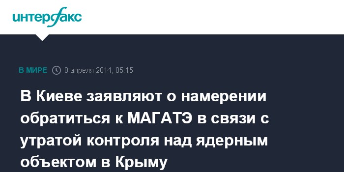 В Киеве заявляют о намерении обратиться к МАГАТЭ в связи с утратой контроля над ядерным объектом в Крыму