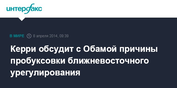 Москва. 8 апреля. INTERFAX.RU - Президент США Барак Обама обсудит во вторник с госсекретарем Джоном Керри ход мирных переговоров между Израилем и Палестиной, которые, по оценке западных наблюдателей, близки к провалу, сообщают американские СМИ.