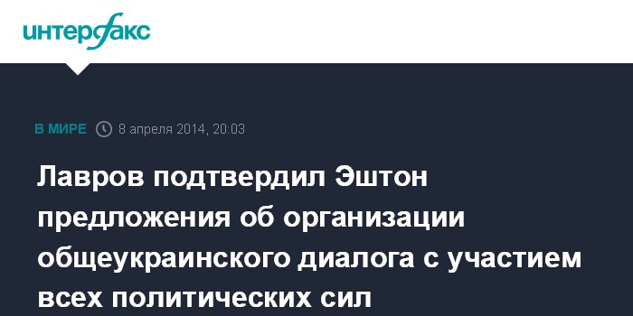 Лавров подтвердил Эштон предложения об организации общеукраинского диалога с участием всех политических сил