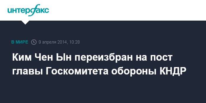 Москва. 9 апреля. INTERFAX.RU - Северокорейский парламент нового созыва утвердил лидера страны Ким Чен Ына в должности первого председателя Государственного комитета обороны КНДР, говорится в сообщении, распространенном по каналам агентства ЦТАК.