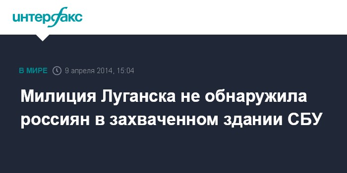 Киев. 9 апреля. INTERFAX.RU - В милиции Луганской области заявляют, что заложников в занятом протестующими здании управления Службы безопасности Украины не было и нет, также там нет иностранных граждан, в частности россиян.