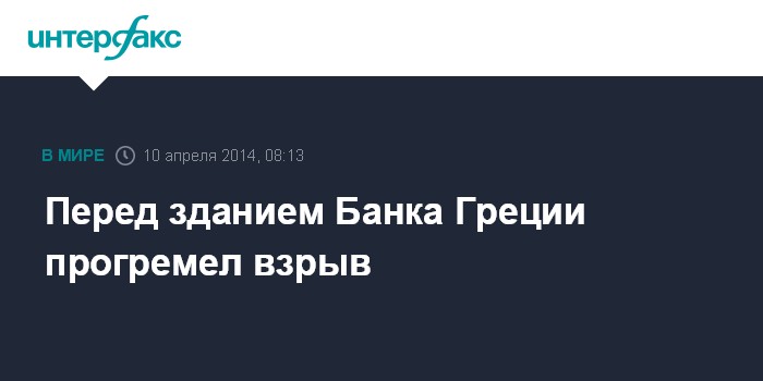 Москва. 10 апреля. INTERFAX.RU - Взрыв прогремел в ночь на четверг перед зданием Банка Греции в Афинах, сообщило агентство Associated Press.