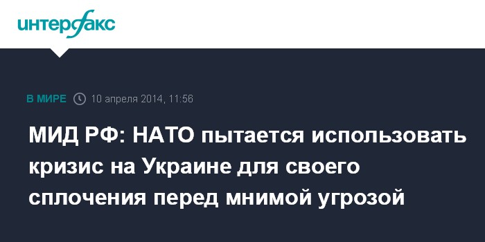 "Постоянные обвинения генсекретаря в наш адрес убеждают в том, что в Альянсе пытаются использовать кризис на Украине для "сплочения рядов" перед мнимой внешней угрозой странам НАТО и подкрепления востребованности в этом плане Альянса в 21-м веке", - говорится в комментарии, размещенном на сайте российского внешнеполитического ведомства в четверг.