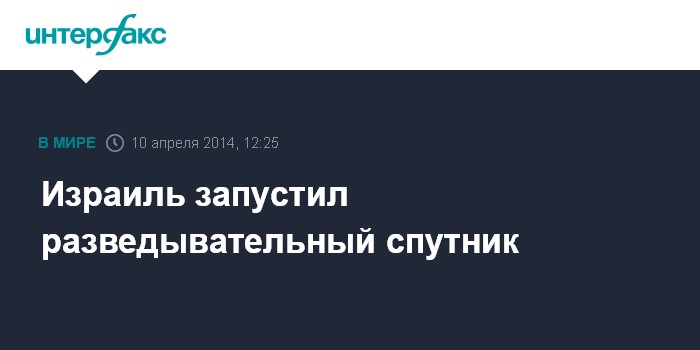 Москва. 10 апреля. INTERFAX.RU - Израильские специалисты провели успешный запуск и вывод на орбиту разведывательного спутника, сообщает в четверг газета Haaretz.
