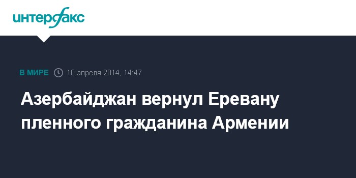 Москва. 10 апреля. INTERFAX.RU - Азербайджанская сторона передала армянской плененного месяц назад гражданина Армении Арсена Ходжояна, сообщил на своей странице в Facebook пресс-секретарь министра обороны Армении Арцрун Ованнисян.