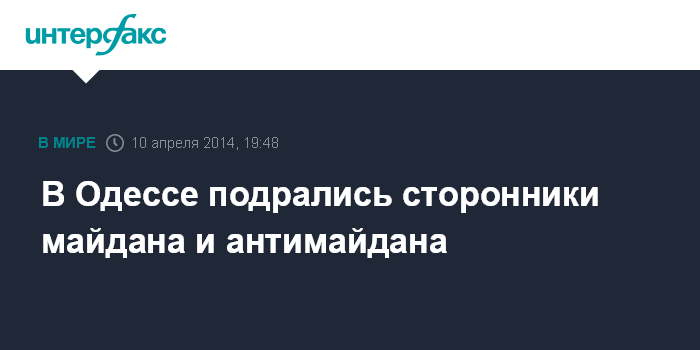 Москва. 10 апреля. INTERFAX.RU - Потасовка между пророссийскими активистами и майдановцами произошла в четверг в Одессе недалеко от гостиницы, где остановился кандидат в президенты Украины, народный депутат Олег Царев (фракция Партии регионов").