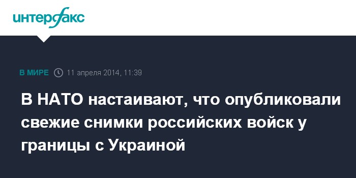"Некоторые СМИ приводят слова российских представителей, которые утверждают, что эти фотографии были сделаны, начиная с августа 2013 года, и что на них якобы изображены проводившиеся тогда учения. Штаб Верховного главнокомандующего Объединенными вооруженными силами НАТО в Европе (SHAPE) решил обнародовать дополнительные изображения, чтобы ясно показать, что утверждения российских представителей полностью неверны", - заявил представитель НАТО.