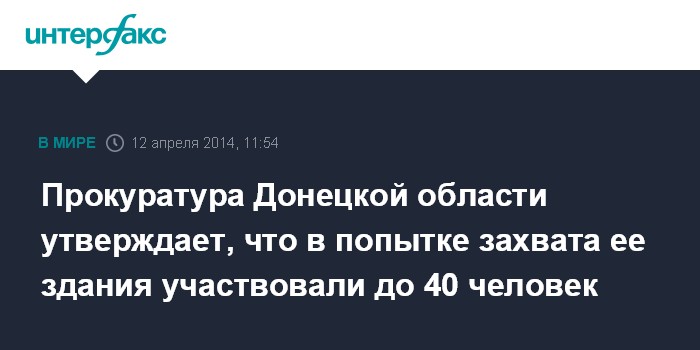 Прокуратура Донецкой области утверждает, что в попытке захвата ее здания участвовали до 40 человек
