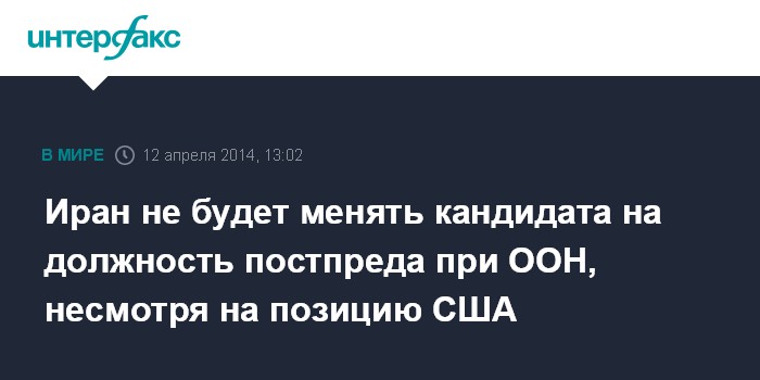 Иран не будет менять кандидата на должность постпреда при ООН, несмотря на позицию США
