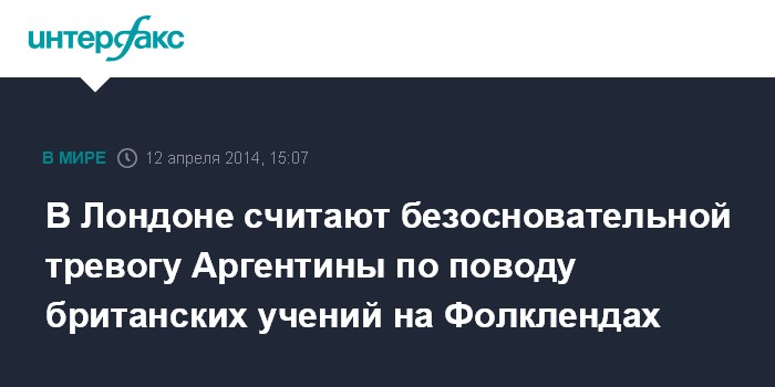 Москва. 12 апреля. INTERFAX.RU - У Аргентины нет оснований беспокоиться по поводу запланированных на апрель военных учений на Фолклендских островах, заявили в субботу в британском МИД. "Предположение Аргентины о том, что Великобритания стремится использовать военную силу, чтобы угрожать ей или всей Латинской Америке, совершенно безосновательно. Равно как и высказывания о том, что мы якобы доставляем ядерное оружие в этот регион" - говорится в заявлении министерства.