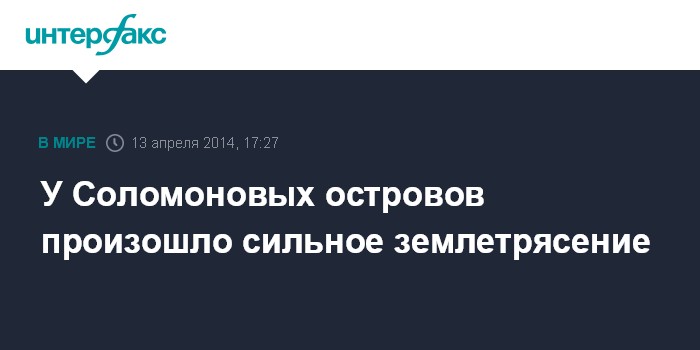 Москва. 13 апреля. INTERFAX.RU - Землетрясение магнитудой 7,7 зафиксировано в субботу в Тихом океане у Соломоновых островов, сообщает Геологическая служба США. Эпицентр подземных толчков находился в 117 километрах к юго-востоку от города Киракира на побережье Соломоновых островов.