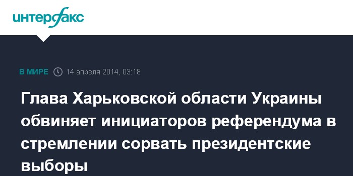 Глава Харьковской области Украины обвиняет инициаторов референдума в стремлении сорвать президентские выборы
