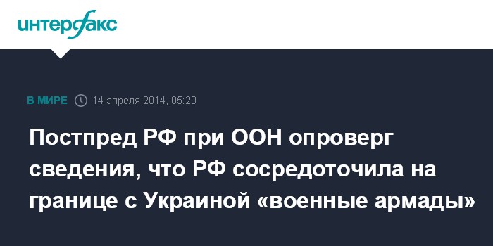Нью-Йорк. 14 апреля. ИНТЕРФАКС - Постпред РФ при ООН Виталий Чуркин назвал небылицами утверждения о том, что Россия сосредоточила на границе с Украиной значительные военные силы.