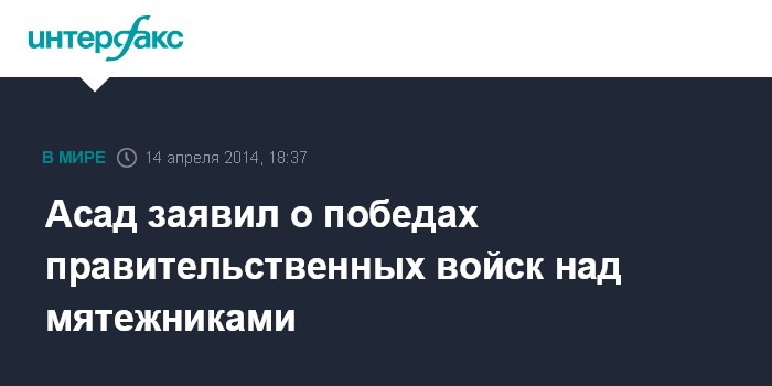 Лондон. 14 апреля. INTERFAX.RU - Президент Сирии Башар Асад заявил о том, что его армия одерживает победу в борьбе с повстанцами, передает в понедельник BBC.