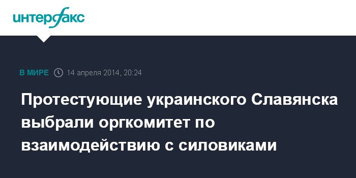 Киев. 14 апреля. INTERFAX.RU - В Славянске (Донецкая область) на собрании, состоявшемся на Центральной площади, выбрали организационный комитет по координации действий территориальной общины, пишет интернет-издание "slavgorod".