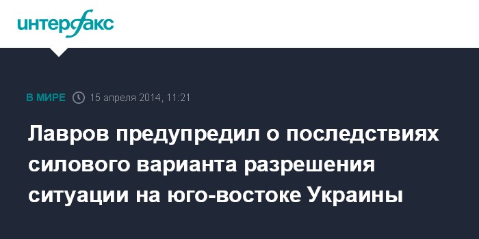 Лавров предупредил о последствиях силового варианта разрешения ситуации на юго-востоке Украины