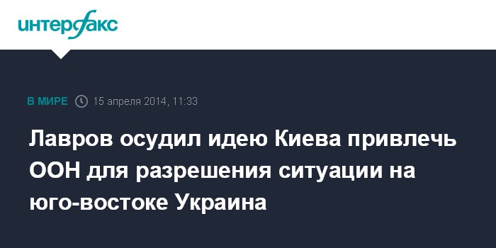 Пекин. 15 апреля. INTERFAX.RU - Инициативы нынешних властей в Киеве о привлечении ООН для противоправных действий на юго-востоке Украины неприемлемы, заявил глава МИД РФ Сергей Лавров.