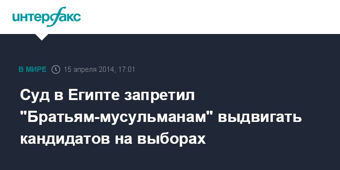Москва. 15 апреля. INTERFAX.RU - Суд в египетской Александрии во вторник запретил членам движения "Братья-мусульмане" выдвигать свои кандидатуры на парламентских и президентских выборах, сообщает агентство EFE.